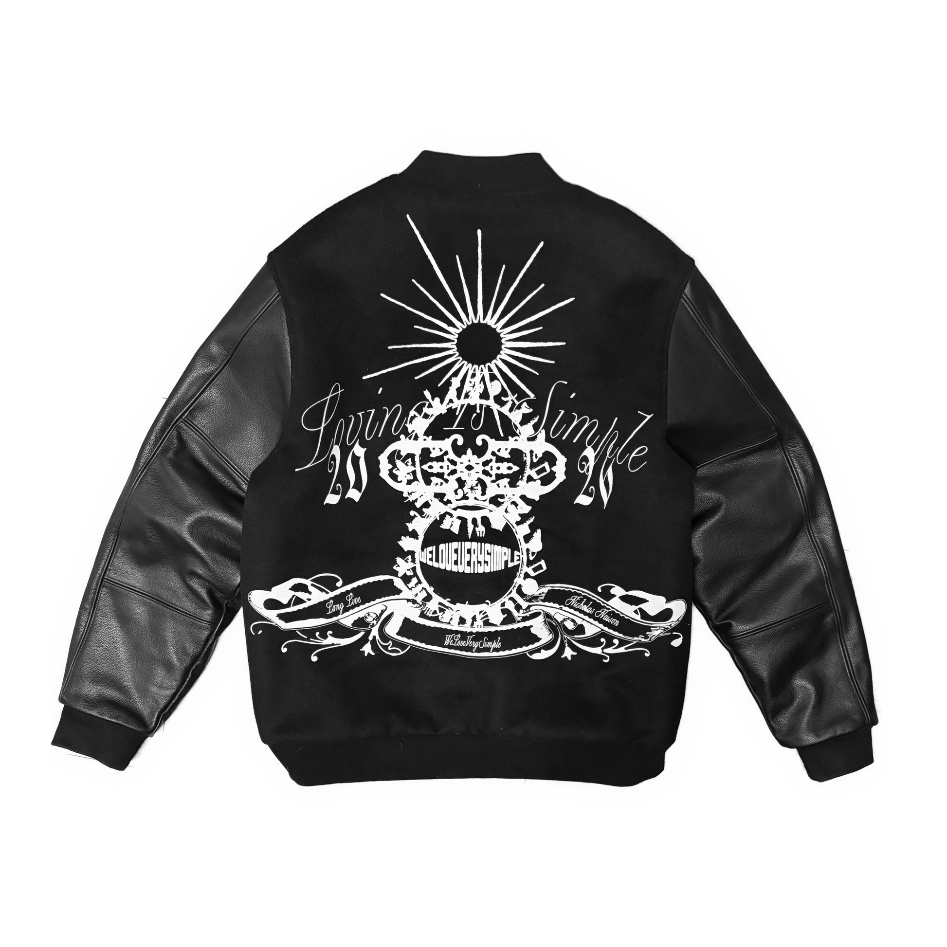 Sieťotlačová grafika na zadnej strane, s výšivkami na predných paneloch.